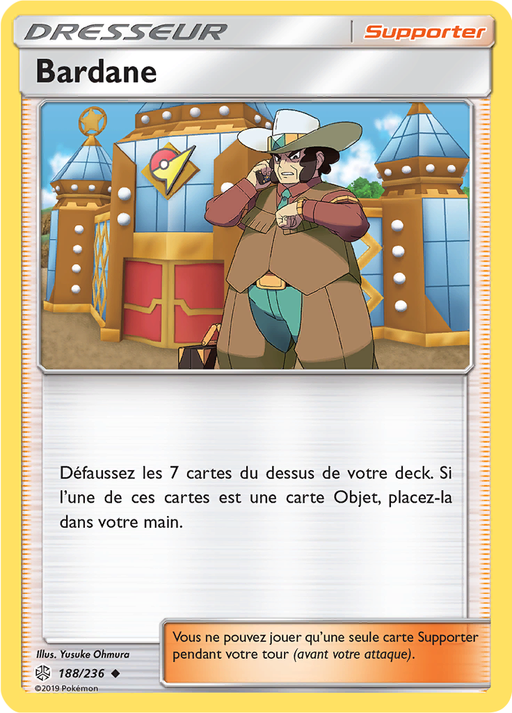Découvrez la carte Pokémon Bardane 188/236, une carte Peu commune issue de la série Soleil & Lune – Éclipse Cosmique (SL12), dernière extension du bloc Soleil & Lune. Elle met à l’honneur les duos Pokémon-GX ESCOUADE comme Arceus & Dialga & Palkia ou Reshiram & Zekrom, avec des illustrations marquantes. Un incontournable pour les collectionneurs et amateurs de belles cartes.