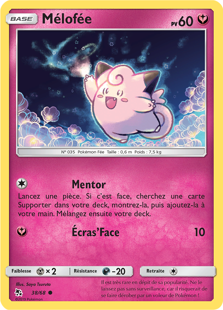 Découvrez la carte Pokémon Mélofée 38/68, une carte Commune issue de la série spéciale Soleil & Lune – Destinées Occultes (SL11.5), connue pour son sous-ensemble Shiny Vault regroupant de nombreux Pokémon chromatiques et des Pokémon GX emblématiques, dont Dracaufeu GX. Un must pour les collectionneurs de cartes brillantes.