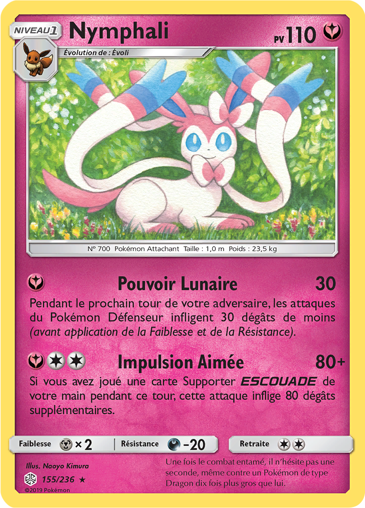 Découvrez la carte Pokémon Nymphali 155/236, une carte Rare issue de la série Soleil & Lune – Éclipse Cosmique (SL12), dernière extension du bloc Soleil & Lune. Elle met à l’honneur les duos Pokémon-GX ESCOUADE comme Arceus & Dialga & Palkia ou Reshiram & Zekrom, avec des illustrations marquantes. Un incontournable pour les collectionneurs et amateurs de belles cartes.