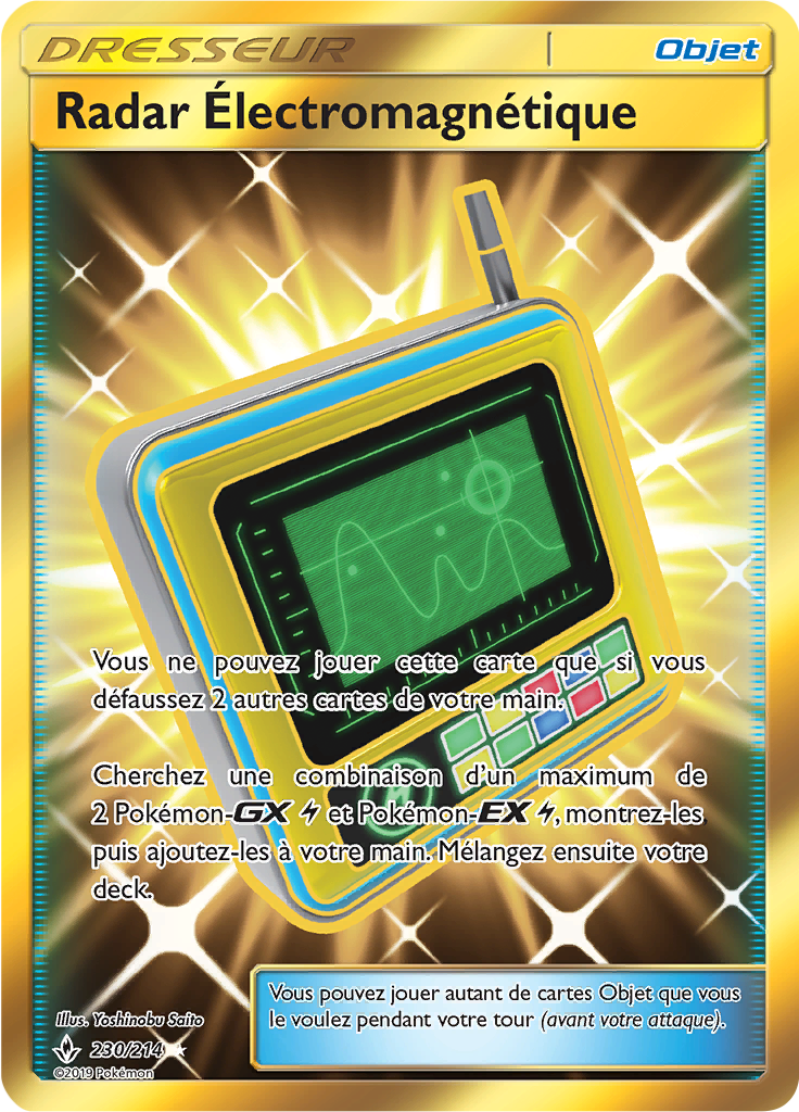 Découvrez la carte Pokémon Radar Électromagnétique 230/214, une carte Holographique issue de la série Soleil & Lune – Alliance Infaillible (SL10), centrée sur les duos Pokémon-GX ESCOUADE tels que Reshiram & Dracaufeu, Lucario & Melmetal ou Gardevoir & Nymphali. Une extension marquante pour les collectionneurs et fans d’illustrations puissantes.