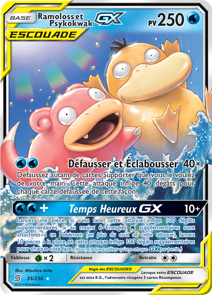 Découvrez la carte Pokémon Ramoloss et Psykokwak 35/236, une carte GX issue de la série Soleil & Lune – Harmonie des Esprits (SL11), centrée sur les duos Pokémon GX Escouade tels que Mewtwo & Mew, Giratina & Carchacrok ou Raichu & Raichu d’Alola. Une extension majeure pour les collectionneurs et amateurs d’illustrations percutantes.